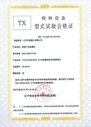 LDP電動單梁型式試驗合格證